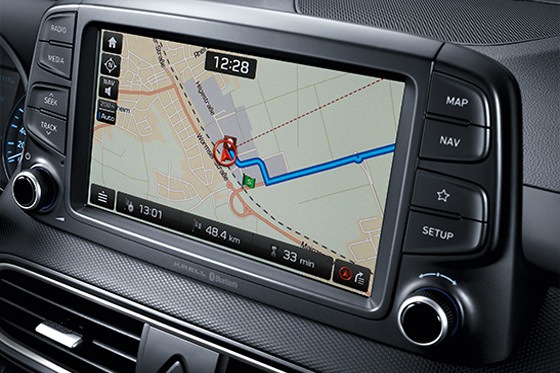 Sistemul multimedia cu ecran de 8 inch, disponibil optional pentru Kona, include functiile Apple CarPlay si Android Auto, pentru redare audio sau de telefon direct de pe smartphone, dar si o camera video pentru marsarier, cu linii de ghidare dinamica. Este disponibil si un abonament gratuit pe sapte ani la serviciile LIVE, care ofera informatii actualizate in timp real despre vreme, trafic, radare* si cautare online a punctelor de interes.