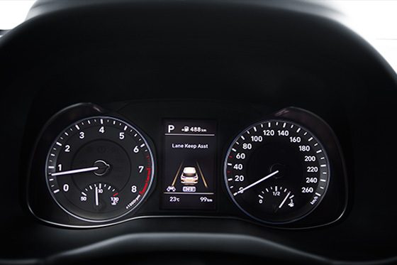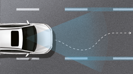LKA avertizeaza vizual si sonor, corectand proactiv pozitia volanului, pentru a mentine autovehiculul pe mijlocul benzii de rulare.