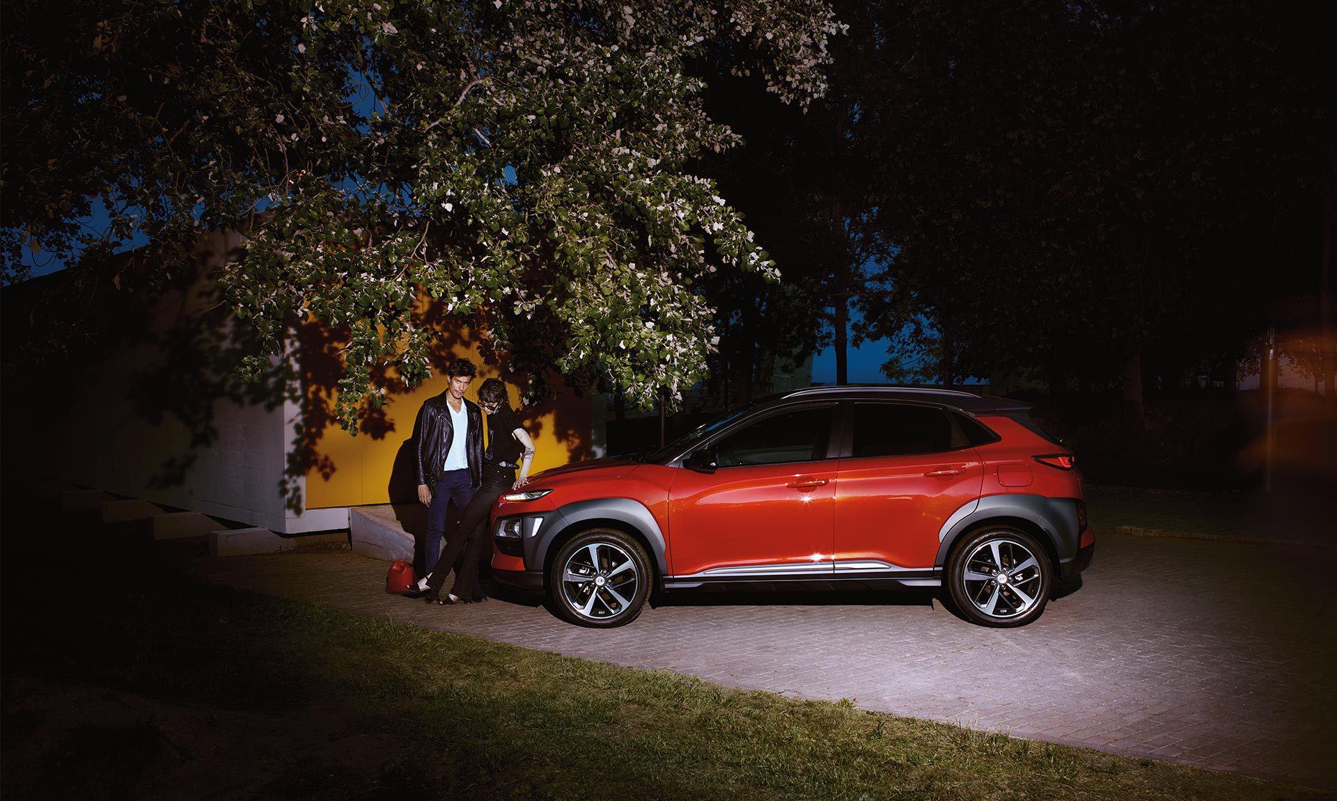 Noul Kona dispune de un design remarcabil, din orice perspectiva. Plafonul in doua nuante si oglinzile exterioare ofera posibilitati multiple de personalizare.