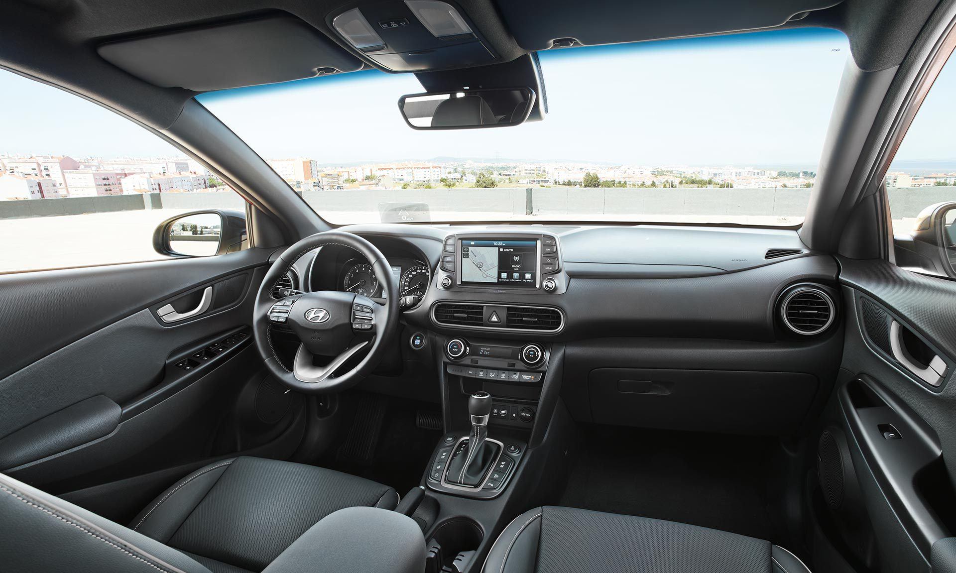 Kona se afla printre cele mai bine clasate autovehicule din segmentul din care face parte in privinta spatiului disponibil pentru picioare, umeri si cap. Zona pentru picioare este generoasa, atat in partea din fata (1.054 mm), cat si in spate (880 mm). Portbagajul are un volum de 361 litri, care poate fi extins pana la 1.143 litri, prin rabatarea banchetei din spate.